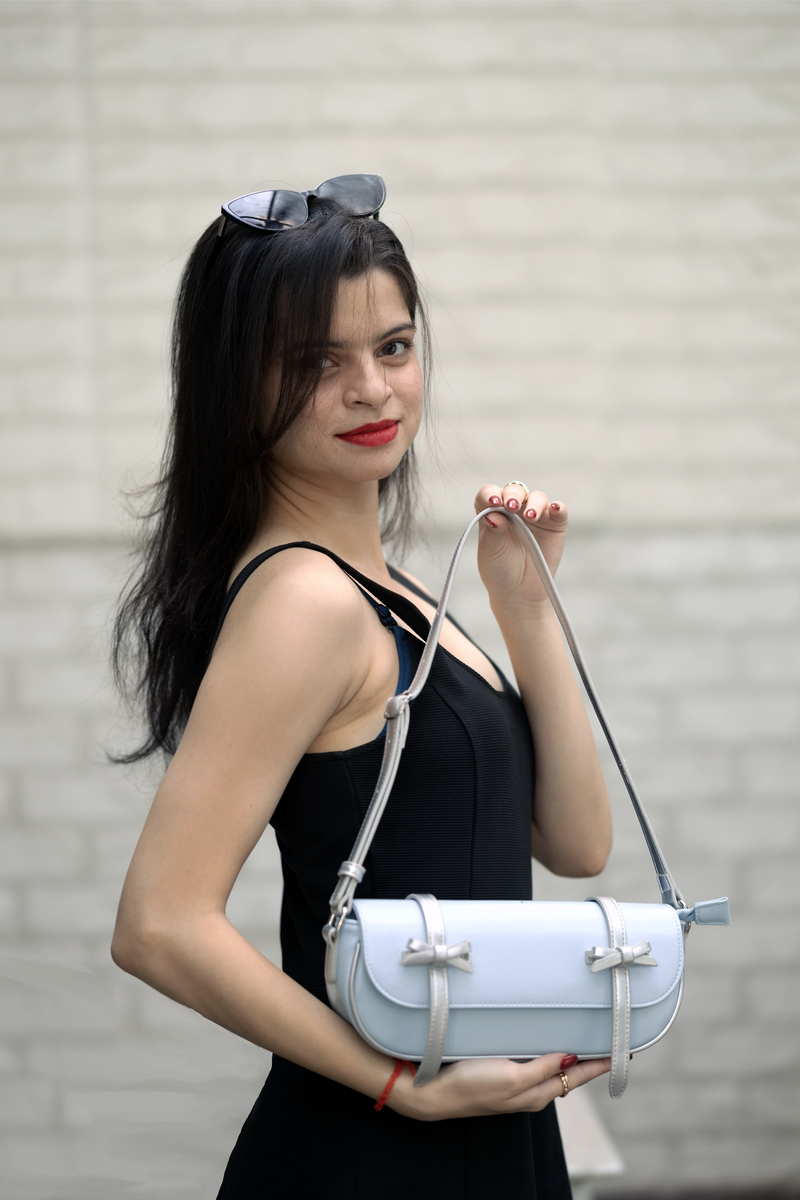 A soft, powdery sky-blue that instantly brings a sense of calm, elegance, and effortless charm. The CELESTE MUSE - Blue Sling is perfect for brunch dates, coffee catch-ups, mall strolls, and days when you want to add a touch of feminine magic to your outfit. With its dainty double bows and sleek Shoulder strap, it strikes the perfect balance between cute and sophisticated—an instant statement without trying too hard.